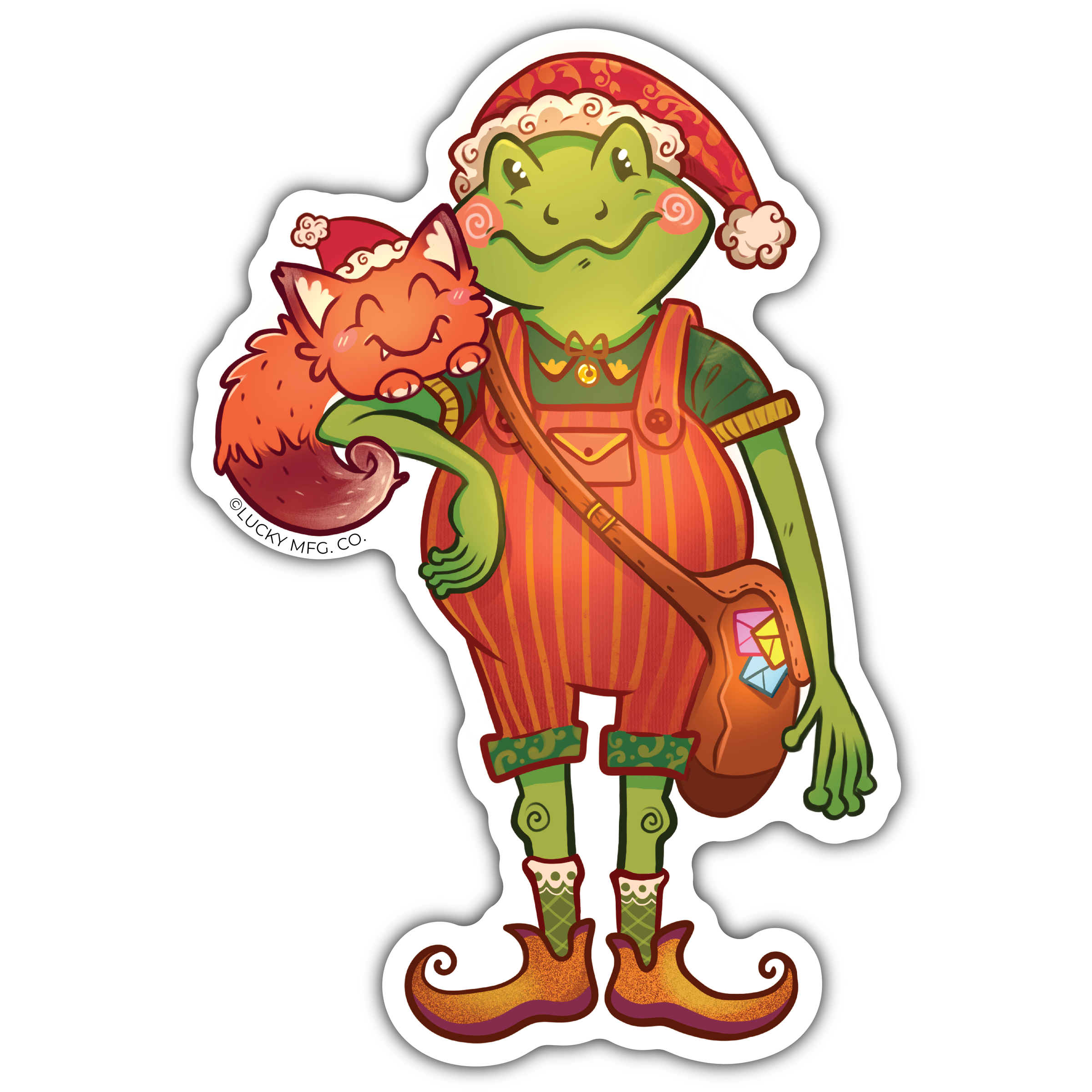 Pocket Fox Froggy Mailman Holiday Sticker