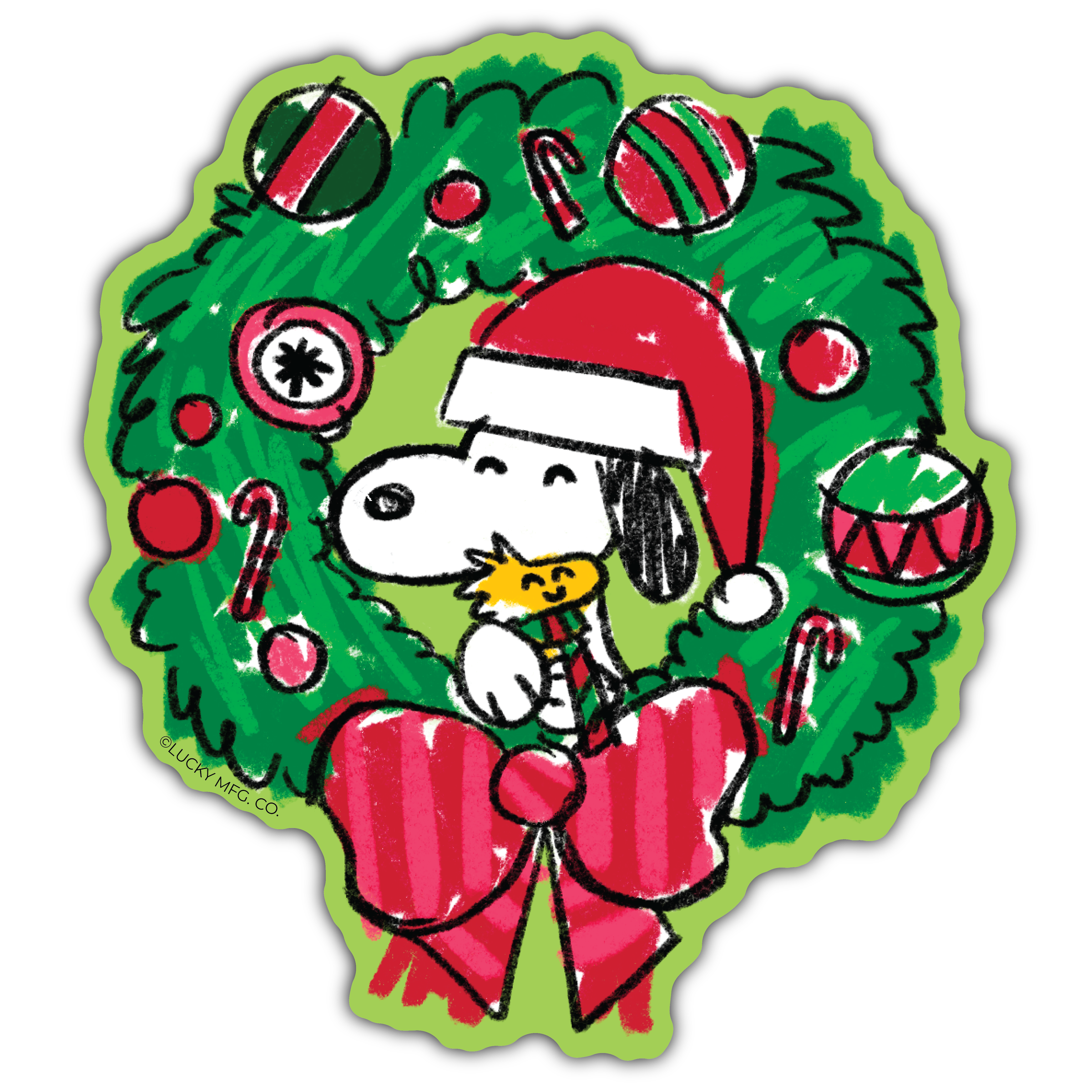 "Snoppy and Woofstick" Holiday Wreath Sticker