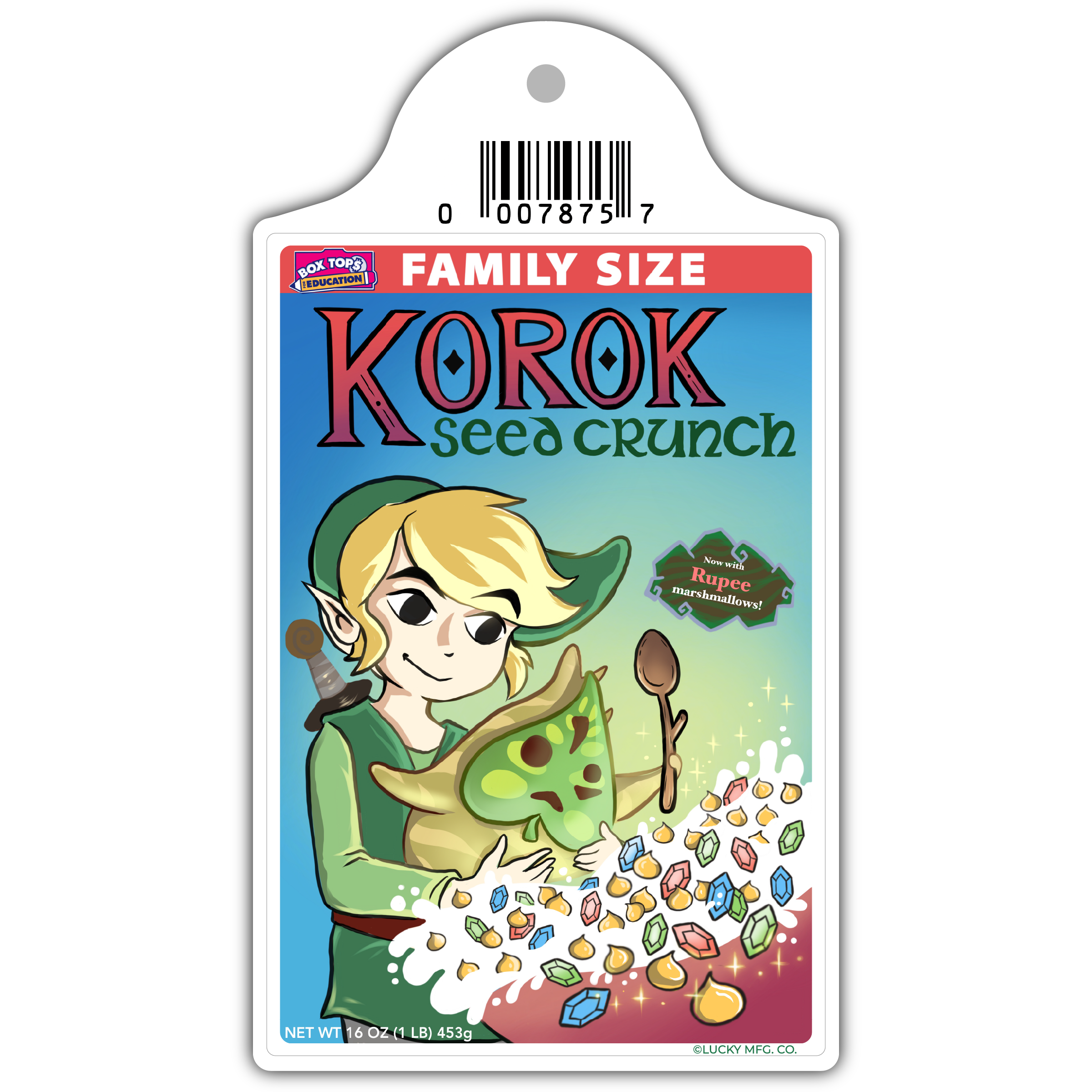 Legend of Zelda "Korok Seed Crunch" Cereal Parody Vinyl Sticker