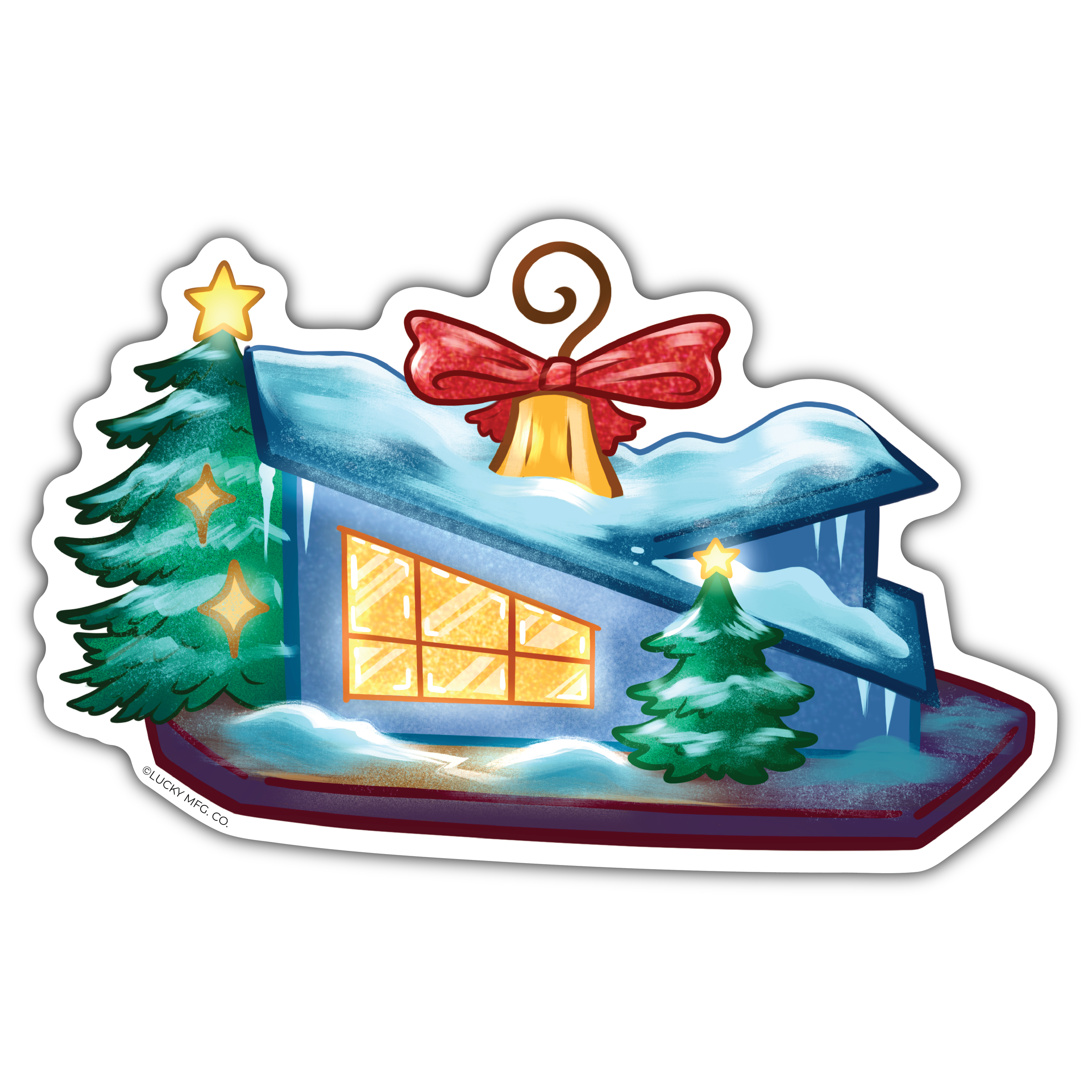 Mid Century Modern House Christmas Ornament Sticker