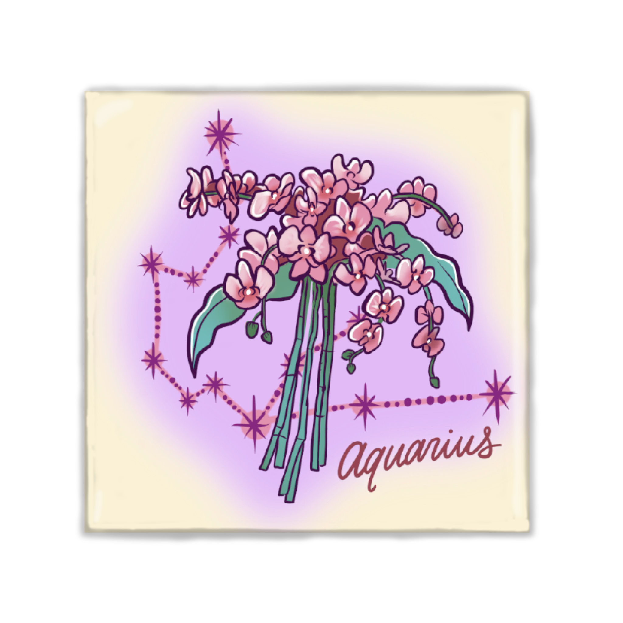 Aquarius Zodiac Sign Square Magnet