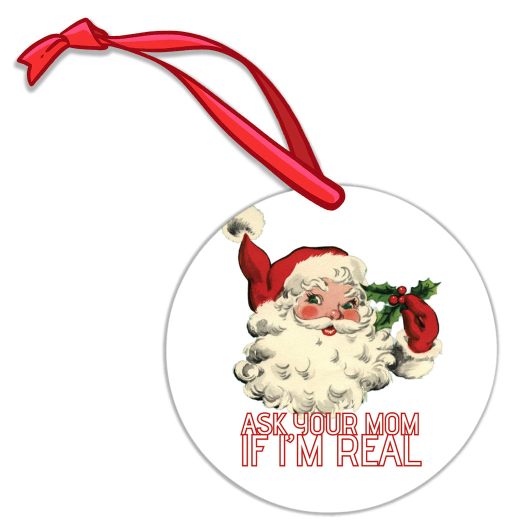 "Ask Your Mom If I'm Real" Santa Round Ornament