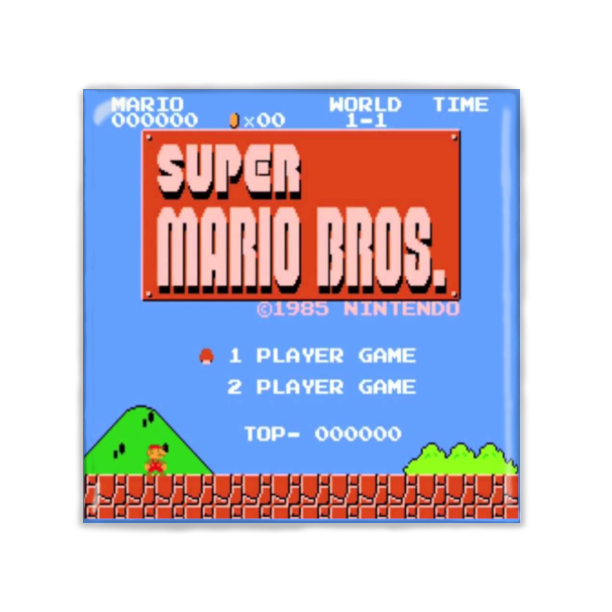 Super Mario Bros Game Start Screen Square Magnet