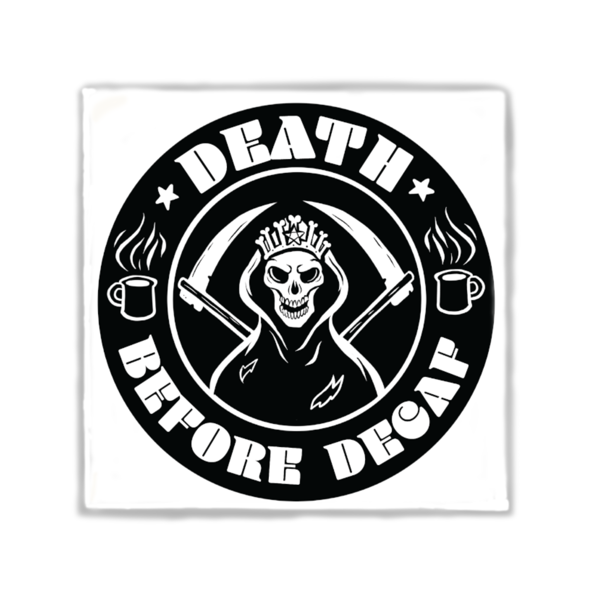 Death Before Decaf Square Magnet