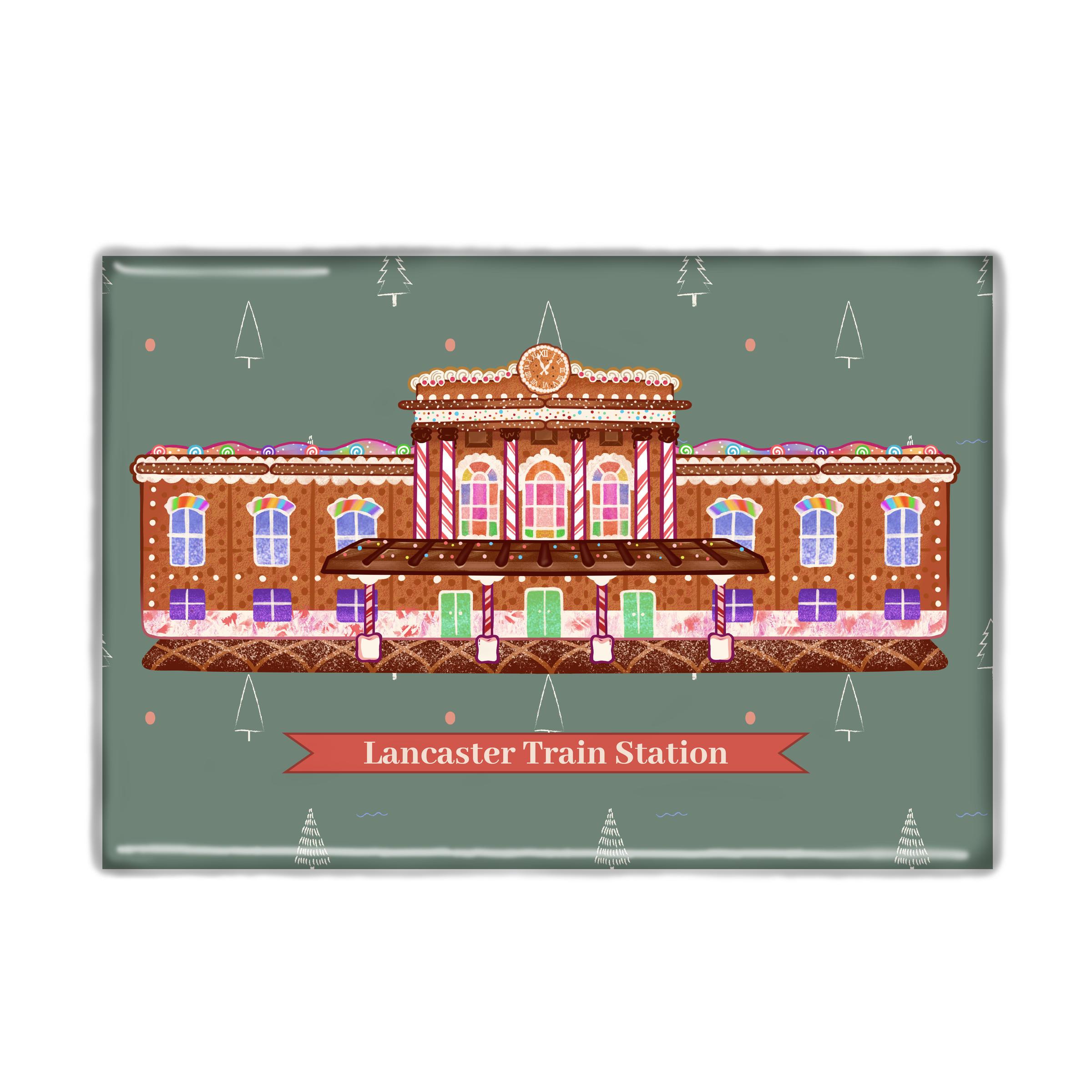 Gingerbread Lancaster Train Station Holiday Magnet